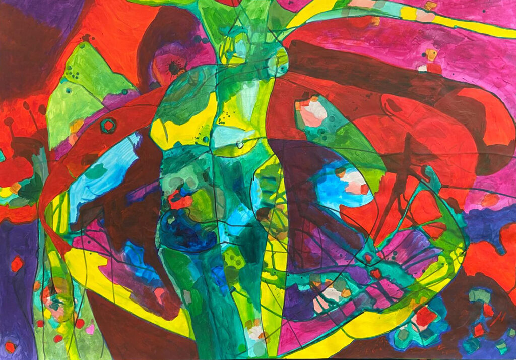 Die aus Mittelfranken stammende Lehrerin präsentiert zahlreiche Bilder und Plastiken. Ihr künstlerisches Schaffen ist geprägt durch einen spielerischen Prozess, der Zufallsverfahren einschließt. Farben und Formen interagieren miteinander, indem immer wieder innegehalten wird, um entstehende Gestaltungsmöglichkeiten zu entdecken und dann bewusst auszuarbeiten. Meist zeigen die Ergebnisse ein erkennbares Motiv, welches jedoch abstrahiert bleibt. Somit sind Malen, Drucken, Collagieren und Modellieren für die 47-Jährige ein steter Streifzug im Rahmen der Möglichkeiten, die das jeweilige Material bietet. Humorvolle, rätselhafte, schöne und irritierende Aspekte offenbaren sich dem Betrachter.